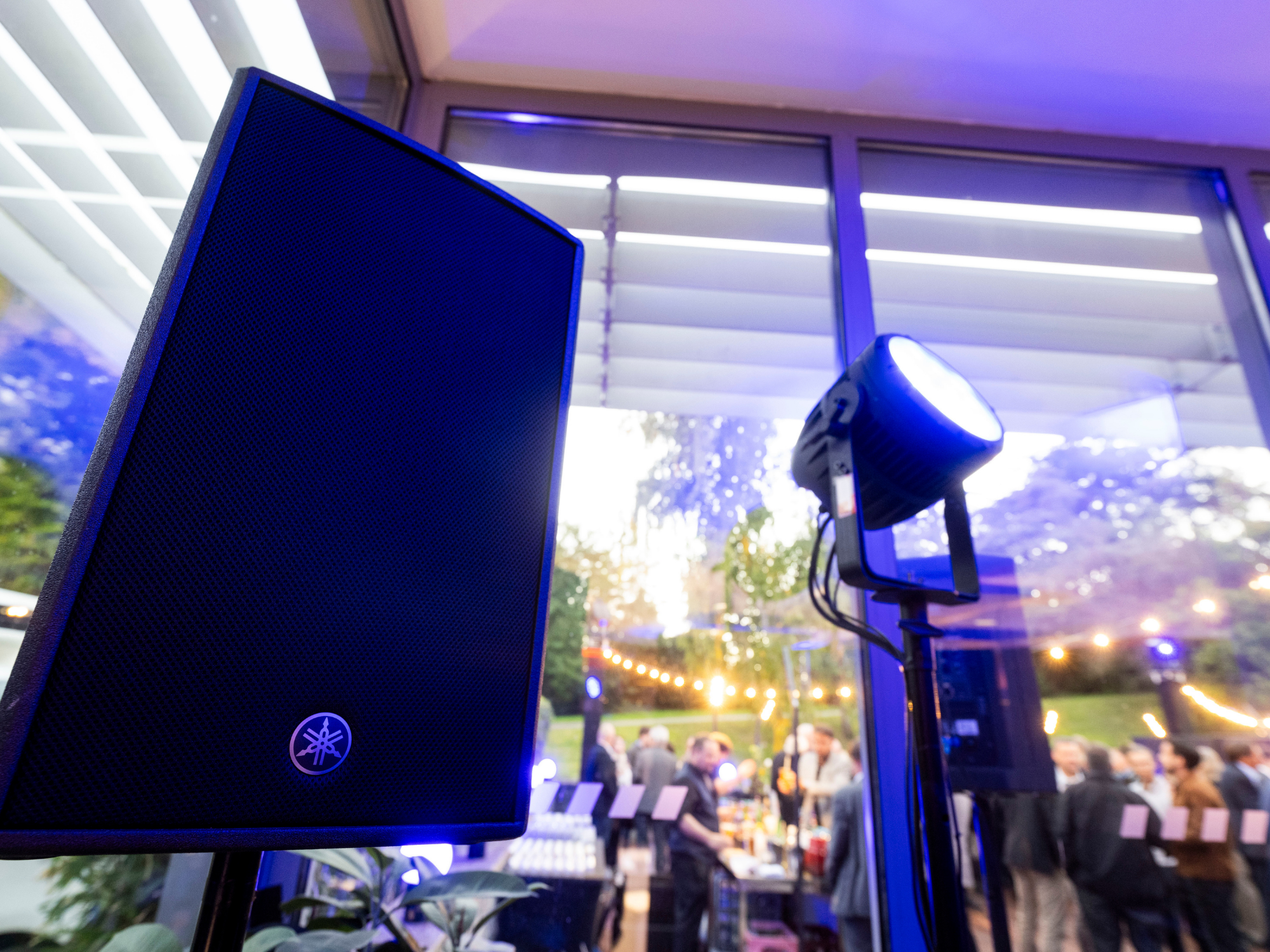 Pour le cocktail dînatoire, Eurosono a déployé un système audio discret et homogène, basé sur des enceintes actives Yamaha DZR10D sur pied et reliées en réseau Dante. Ce dispositif a permis une diffusion musicale douce et équilibrée, créant une atmosphère élégante et propice au networking.
