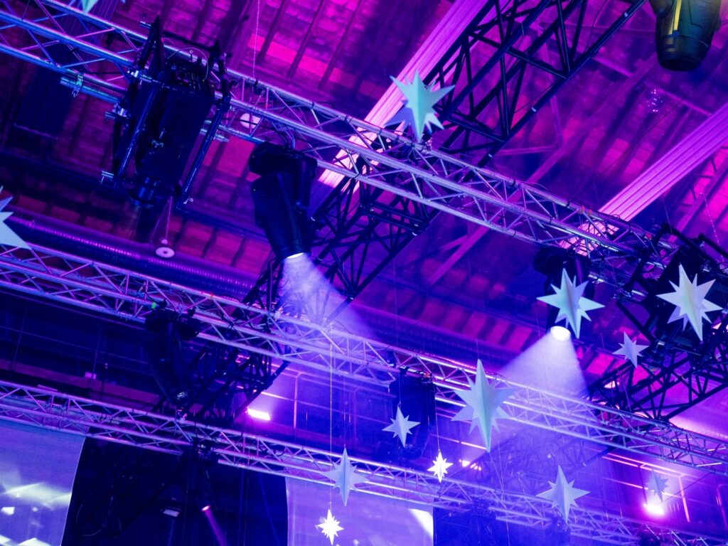 - Sécurité en hauteur : Déploiement d’un pont lumière en structure pour sécuriser l’ensemble des équipements suspendus.