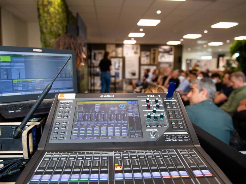 Et pour que tous les distributeurs puisse avoir accès à la même information, l’équipe Tech and Live avait installé un système son en CODA AUDIO avec 6 enceintes HOPS 5 judicieusement répartie dans le showroom et accompagnée de leur ampli M-RACK CODA. Chaque intervenant disposait d’un micro casque TWINPLEX SHURE fonctionnant en HF grâce au système ULX D de SHURE. la sonorisation était pilotée par un régisseur son, bien sûr, grâce à une régie QL1 DANTE de YAMAHA.